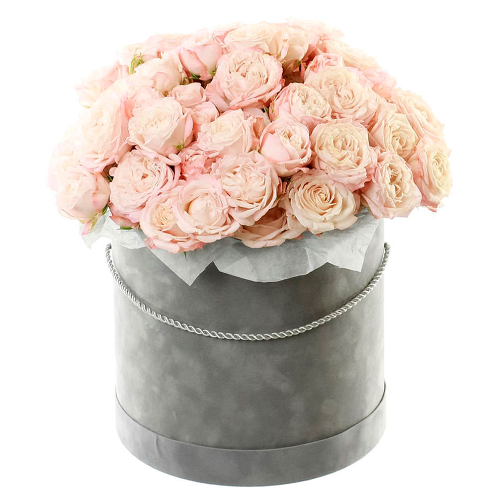 На фото представлен образец. Объем коробки зависит от выбранного вами размера. Точное количество цветов и цветовую гамму вы можете уточнить у менеджера по телефону.